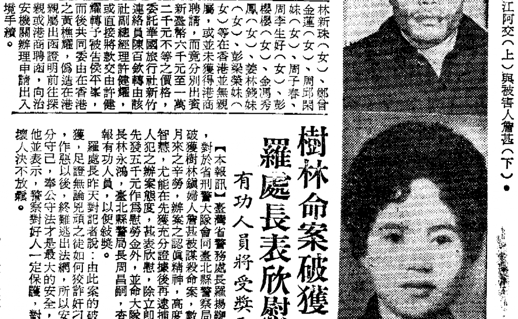 《中央日報》,〈樹林命案破獲 羅處長表欣慰〉,1970年3月6日,第六版