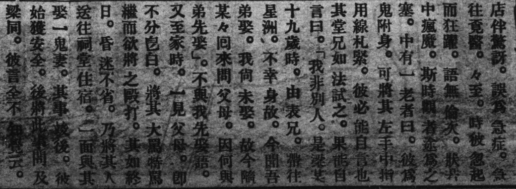 故事.圖片來源:《臺灣日日新報》漢文版1929年7月8日小說〈魂鬼索娶〉。