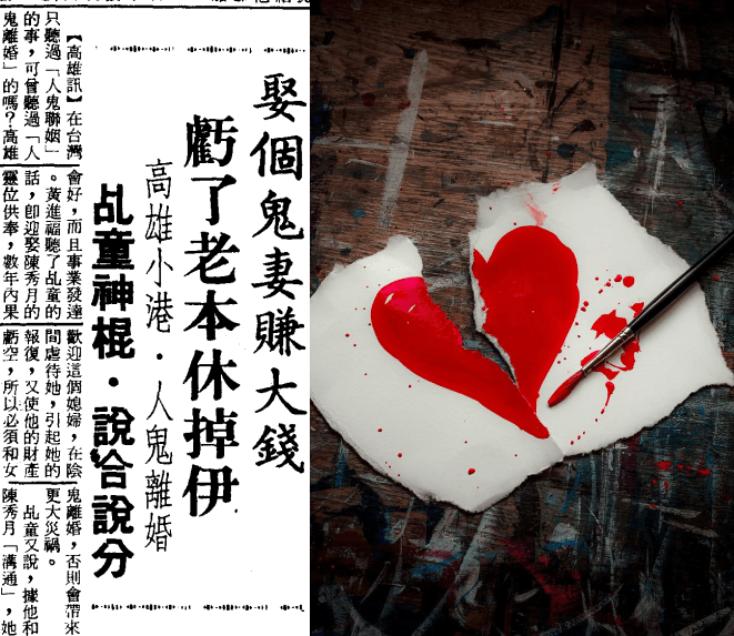 故事.圖片來源:《聯合報》1981年11月18日報導〈娶了鬼妻賺大錢 虧了老本休掉伊〉。