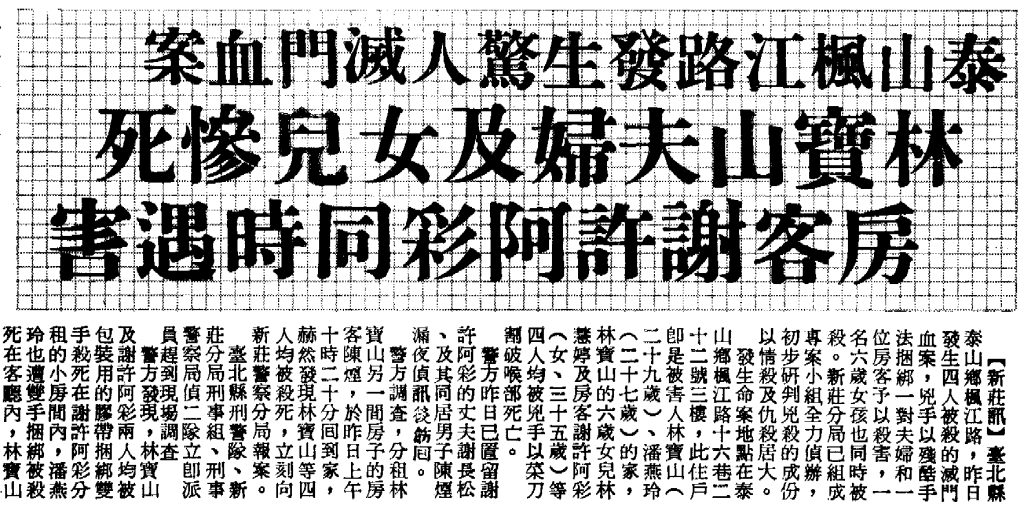 先從擔任二房東的林氏一家三口看起。林寶山是裁縫師,潘燕玲則在附近織布廠工作,據說兩夫妻感情很好,生活單純,也沒有與人結怨、欠債等情事。看起來,兇手應該與林家無關。
