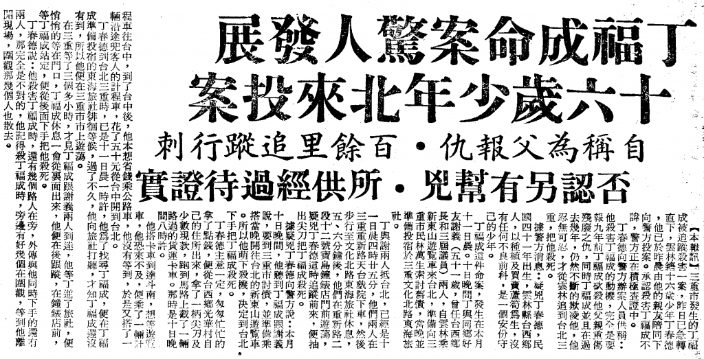 而他,也真的動手去做了。他成功地報了父仇,讓丁福成慘死在三重的街頭。