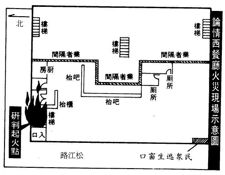 論情西餐廳,當然也不脫這個脈絡。它的裝潢隔間,剛好堵住一個通往一樓的樓梯,如果這個樓梯不被封死,不知道火災可以少枉死多少人!除此之外,論情西餐廳所在區域屬於第三種住宅區,任何建築物只有一樓和地下室可以合法開設餐廳,但論情西餐廳卻把店開在二樓,明顯違法。台北市政府的工務局和建設局,也知道論情西餐廳的違法狀況,早在1992年11月14日發函勒令停業,但論情西餐廳卻不為所動,照常營業。