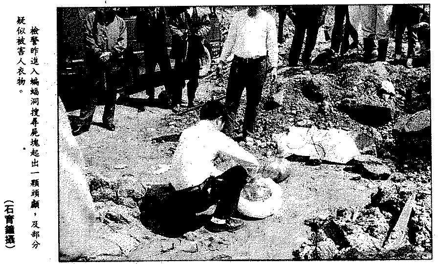 一袋、兩袋、三袋……警察們瞠目結舌看著蝙蝠洞裡發現的袋子,裡面裝滿了人類的屍塊。在洞穴深處,更有一個紙箱,裡面裝著男人的頭顱,旁邊有燒過冥紙的痕跡。